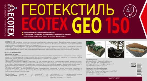 ECOTEX GEO – нетканый, садовый и строительный геотекстиль, изготовленный методом термоскрепления. Данный материал обладает следующими свойствами: повышенная механическая прочность, отличная фильтрация, стойкость к ультрафиолетовому воздействию и влиянию различных химических веществ.