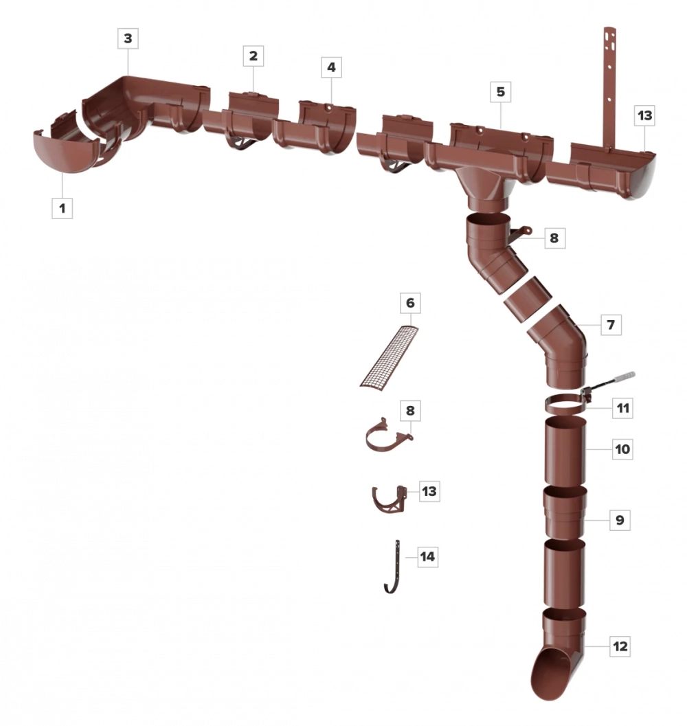 Хомут производится из поливинилхлорида с различными добавками. Элемент не подвержен коррозии и биопоражению, легко очищается и устойчив к воздействию агрессивных факторов окружающей среды. Такой хомут предназначен для крепления водосточной трубы на необходимом от фасада расстоянии.