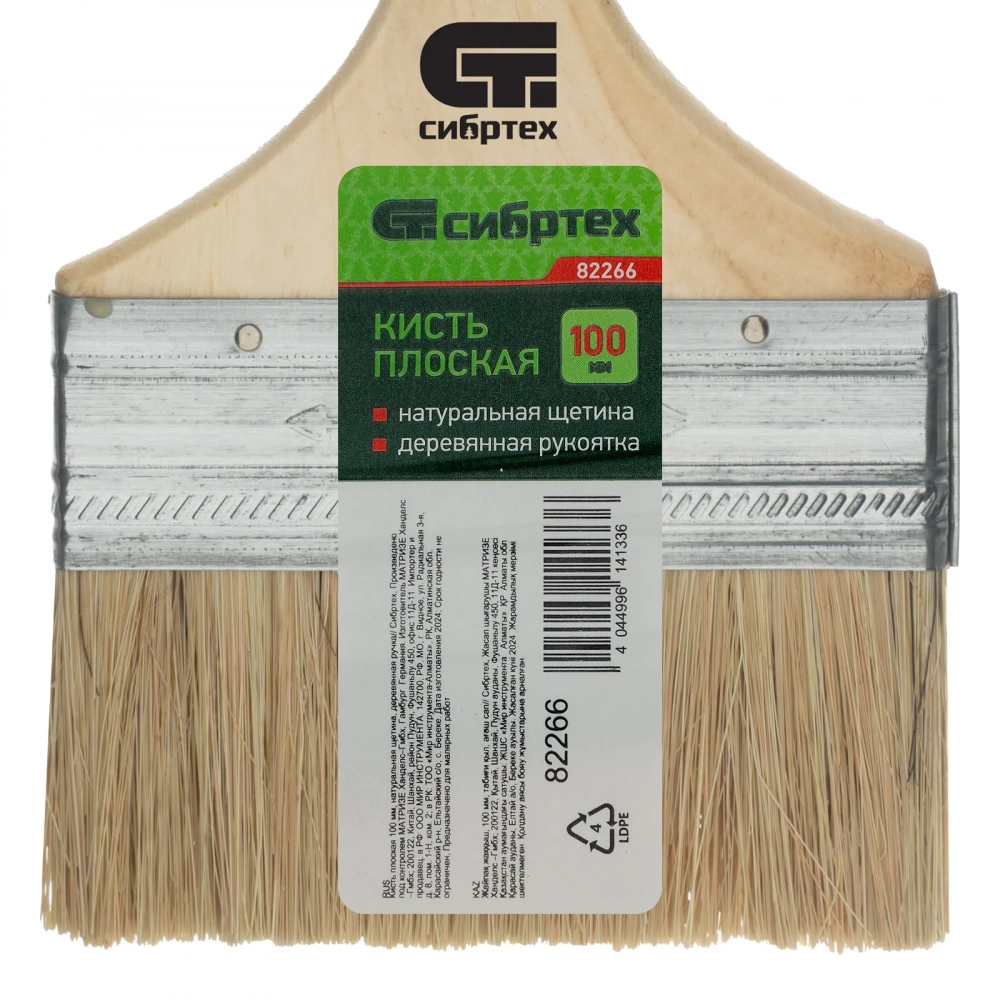 Плоская кисть Сибртех шириной 100 мм, с натуральной щетиной и деревянной ручкой, понадобится при окрашивании различных поверхностей. Ширина 100 мм делает инструмент оптимальным для окрашивания участков большой площади. Свиная натуральная щетина с добавлением искусственной подходит для большинства красок, в том числе масляных и на основе растворителей.