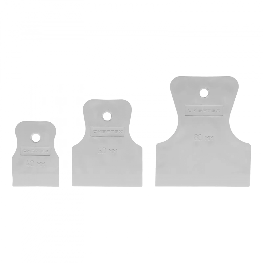 Набор Сибртех включает в себя 3 шпателя из белой резины размером 40-60-80 мм. Используется для создания финишных покрытий, затирки плиточных швов и работы с герметиками. Резиновые рабочие поверхности не оставляют следов и царапин, обеспечивают ровное нанесение материалов.
