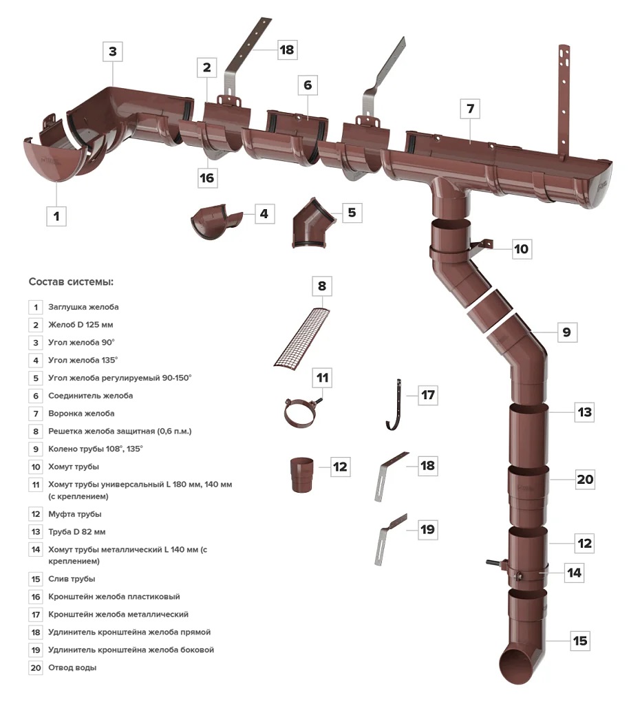 Слив производится из поливинилхлорида с различными добавками. Элемент не подвержен коррозии и биопоражению, легко очищается и устойчив к воздействию агрессивных факторов окружающей среды. Слив предназначен для отвода воды от цоколя. Это завершающий элемент водосточной системы для скатной кровли.